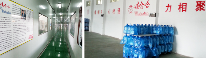 娃哈哈桶裝水灌裝工藝采用國內(nèi)領(lǐng)先的1800非接觸式灌裝機(jī),其優(yōu)異的設(shè)備及工藝。整個灌裝在獨(dú)立的等級達(dá)到1000級的密閉空間進(jìn)行,設(shè)備和空間按食品企業(yè)優(yōu)質(zhì)生產(chǎn)規(guī)范、規(guī)定頻率進(jìn)行消殺作業(yè),通過高級泵向灌液桶灌水,使灌液桶始終處在充滿的狀態(tài),封好蓋的桶裝水在不銹鋼輸送帶上經(jīng)過嚴(yán)格的檢驗(yàn),檢驗(yàn)合格產(chǎn)品套上全封閉激光雕刻防偽標(biāo)記膜套,再噴上生產(chǎn)日期,最后套上防塵袋,如此生產(chǎn)出來的成品水每個批次均需留樣兩桶,一桶水存放在留樣處,在30天的保質(zhì)期內(nèi)可隨時抽樣檢驗(yàn),另一桶立即送到化驗(yàn)室檢測,待各項(xiàng)相關(guān)標(biāo)檢測合格才可出廠,流入市場終端。